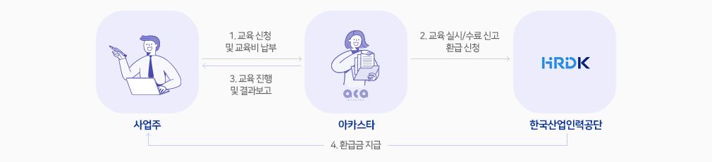 »ç¾÷ÁÖ(´ëÇ¥ÀÚ)°¡ ¼Ò¼Ó ±Ù·ÎÀÚ µîÀÇ Á÷¹«¼öÇà´É·Â Çâ»óÀ» À§ÇÏ¿© ±³À°À» ÁøÇàÇÒ ¶§, ÀÌ¿¡ ¼Ò¿äµÇ´Â ºñ¿ëÀÇ ÀϺθ¦ Áö¿øÇØ ÁÖ´Â Á¦µµÀÔ´Ï´Ù. |